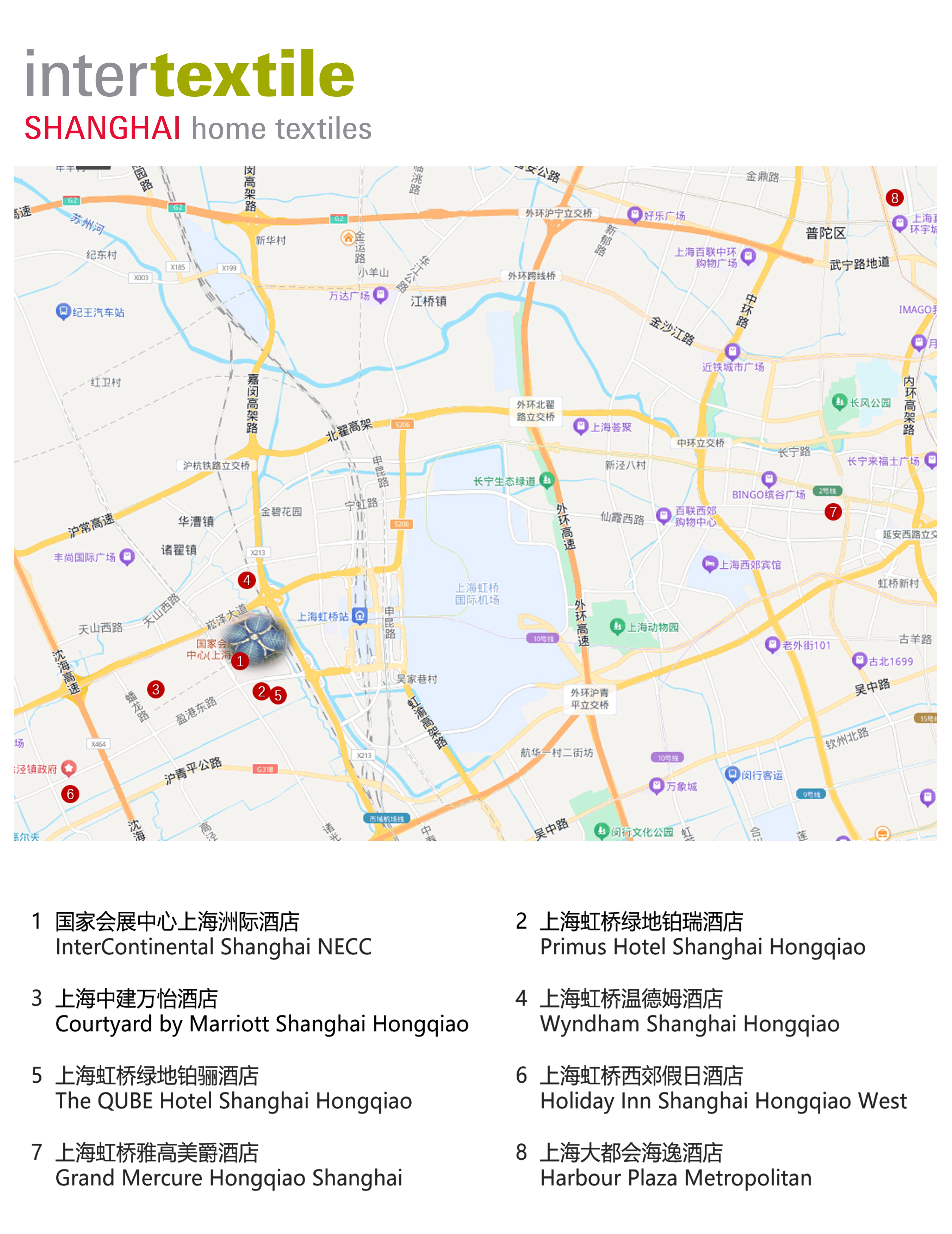 您可在此找到从外地往来上海的交通信息,以及各项住宿、旅游相关的重要资讯,为参加中国国际家用纺织品及辅料(秋冬)博览会作好准备。